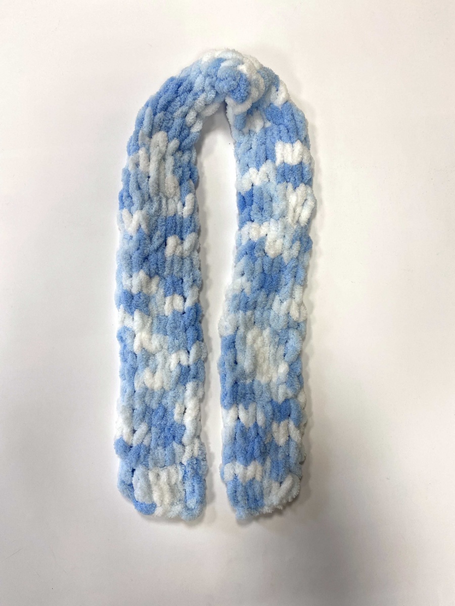 Maruška Mrázová je nevidomá a plete šály. Naučila se to před šesti lety v Tyfloservisu u pí. Grilové. K pleteným kočičkám se dostala ve středisku pro nevidomé v Praze, kde si techniku také osvojila. Celkově jsou ruční práce její zálibou, která ji naplňuje a dává jí radost. Vždy ji potěší, když se její výrobky někomu líbí a může je s chutí dále vyrábět. Při své činnosti potřebuje pouze pomoc při výběru typu příze a barvy. U kočiček navíc potřebuje někoho, kdo usadí očička a čumáček. Ve svých začátcích zápasila s ukončováním a často jí utekly oči, a tak musela párat. Ale dnes už pracuje bez problémů.Pytlíčky z Komu?NITka